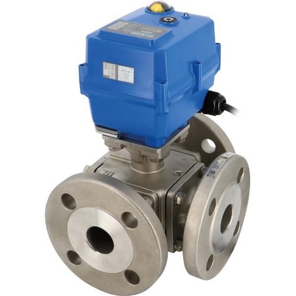 783 + TCR - Robinet sfera 3 cai cu actionare electrica TCR PN16 asigura functia de amestec, derivatie sau descarcare automata a instalatiilor industriale. Constructie cu sfera flotanta, omologare CE 2014/68 si ATEX.